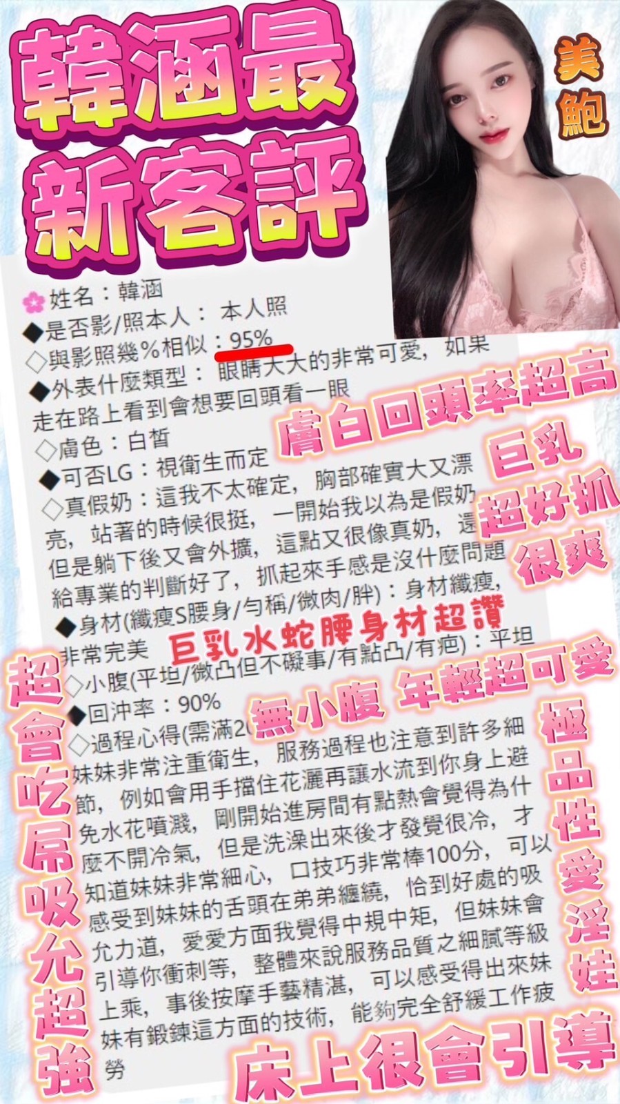膚質細緻,嫵媚迷人,魔鬼身材    Review by 姚**