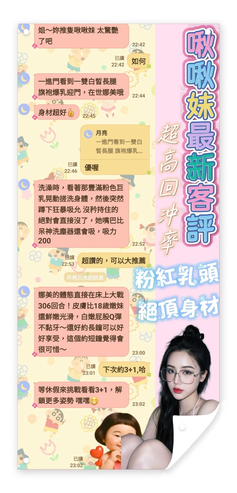 服務項目:共浴/無套吹/舌吻(視口腔清潔)/小親親/按摩/乳交/足交/舔蛋/品鮑/69/角色扮演(性感內衣)…