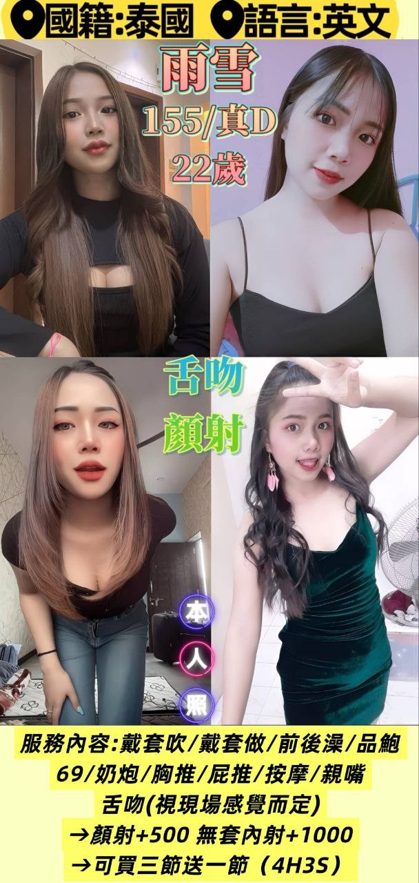 無套吹/戴套做/前後澡/品鮑/69/舔蛋/奶炮/胸推/屁推/按摩/親嘴/舌吻