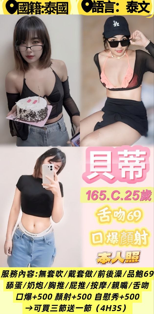 戴套做/前後澡/69/舔蛋/奶炮/胸推/屁推/按摩/親嘴/舌吻(視現場感覺而定)