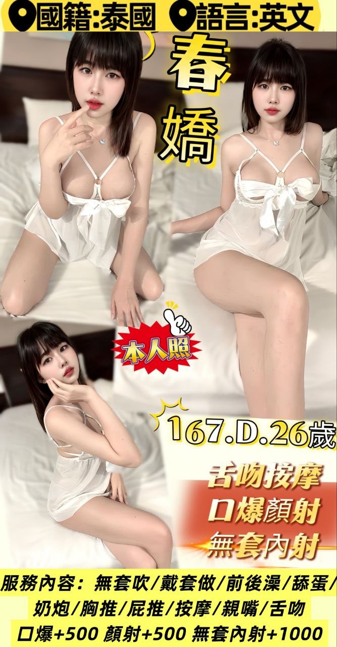 無套吹/戴套做/前後澡/品鮑/69/奶炮/胸推/屁推/按摩/親嘴/舌吻