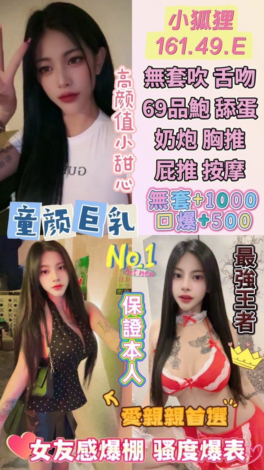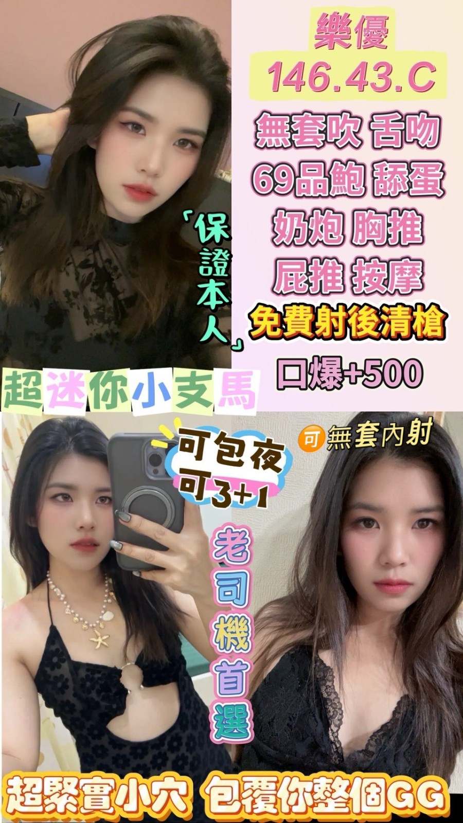 無套吹/甜蜜共浴/KISS(視感覺)/69品鮑/按摩/奶炮/胸推/屁推/免費射後清槍