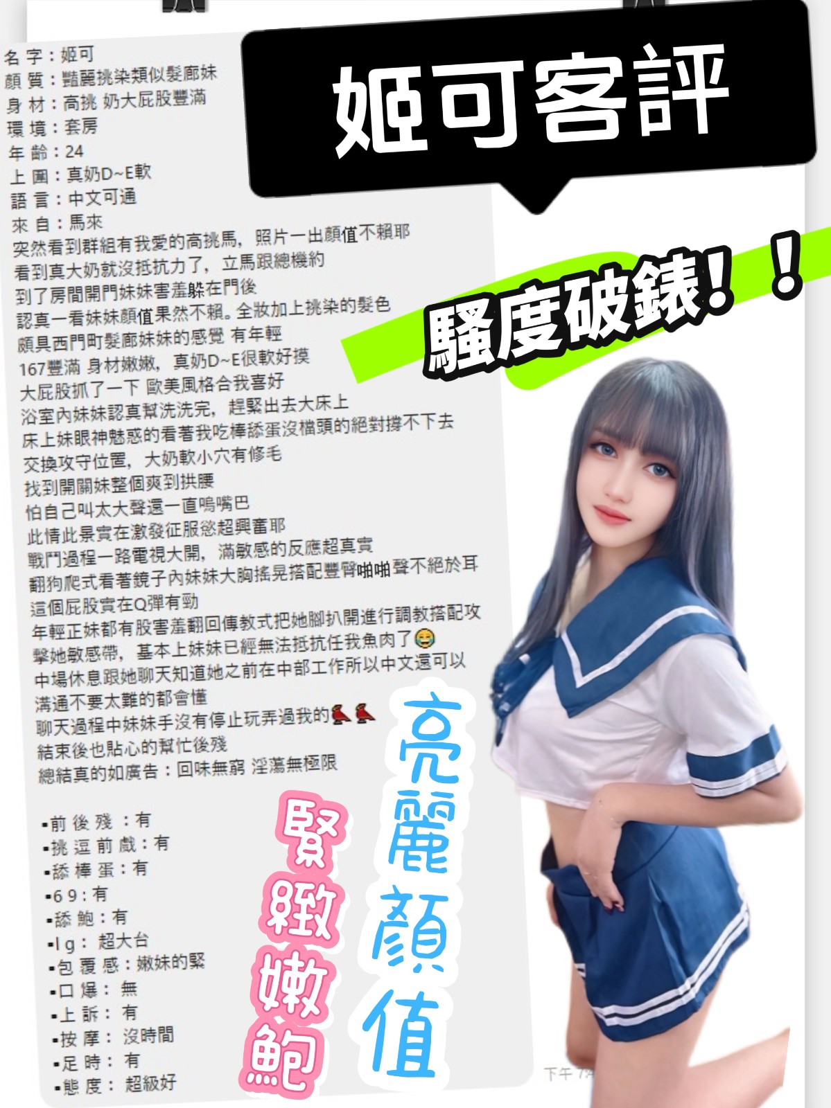 超雪白肉體,粉色雙頰甜美女孩兒    Review by 傅**