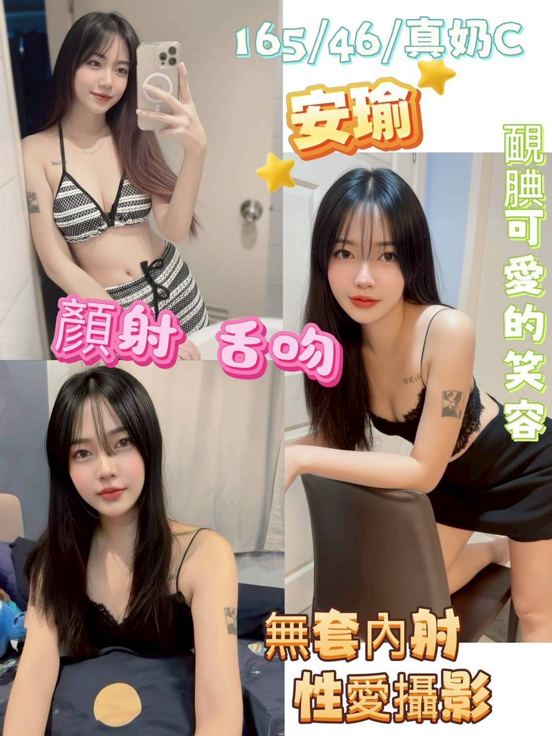 無套吹、鴛鴦戲水、親親、品鮑、69、 按摩、奶炮、奶推、屁推、舔蛋、穿絲襪(需自備)、角色扮演(需自備)